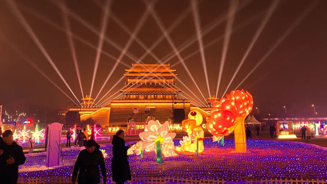 花燈璀璨迎新春。夜幕降臨,在千年運(yùn)河之畔,淮安漕運(yùn)門,一組組花燈立于城墻腳下,交相輝映,共同組成了美麗花燈海洋,美輪美奐。市民游客徜徉在燈陣之中,盡情感受流光溢彩的景觀與喜樂(lè)氛圍?,F(xiàn)場(chǎng)市民說(shuō):“我剛剛跟朋友一邊吃一邊玩一邊看,拍了好多好看的照片。在那邊還有漕運(yùn)門城墻光影秀,非常酷炫。”